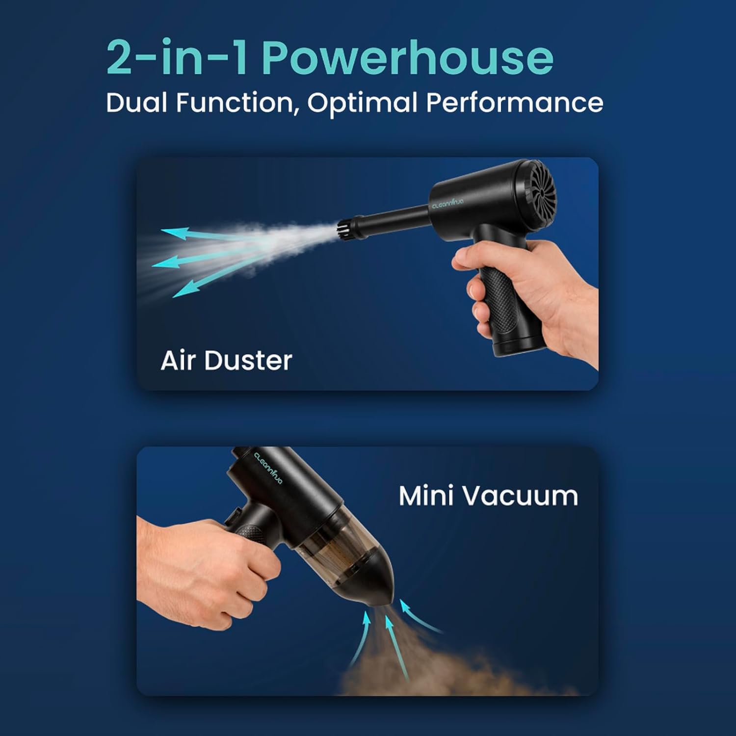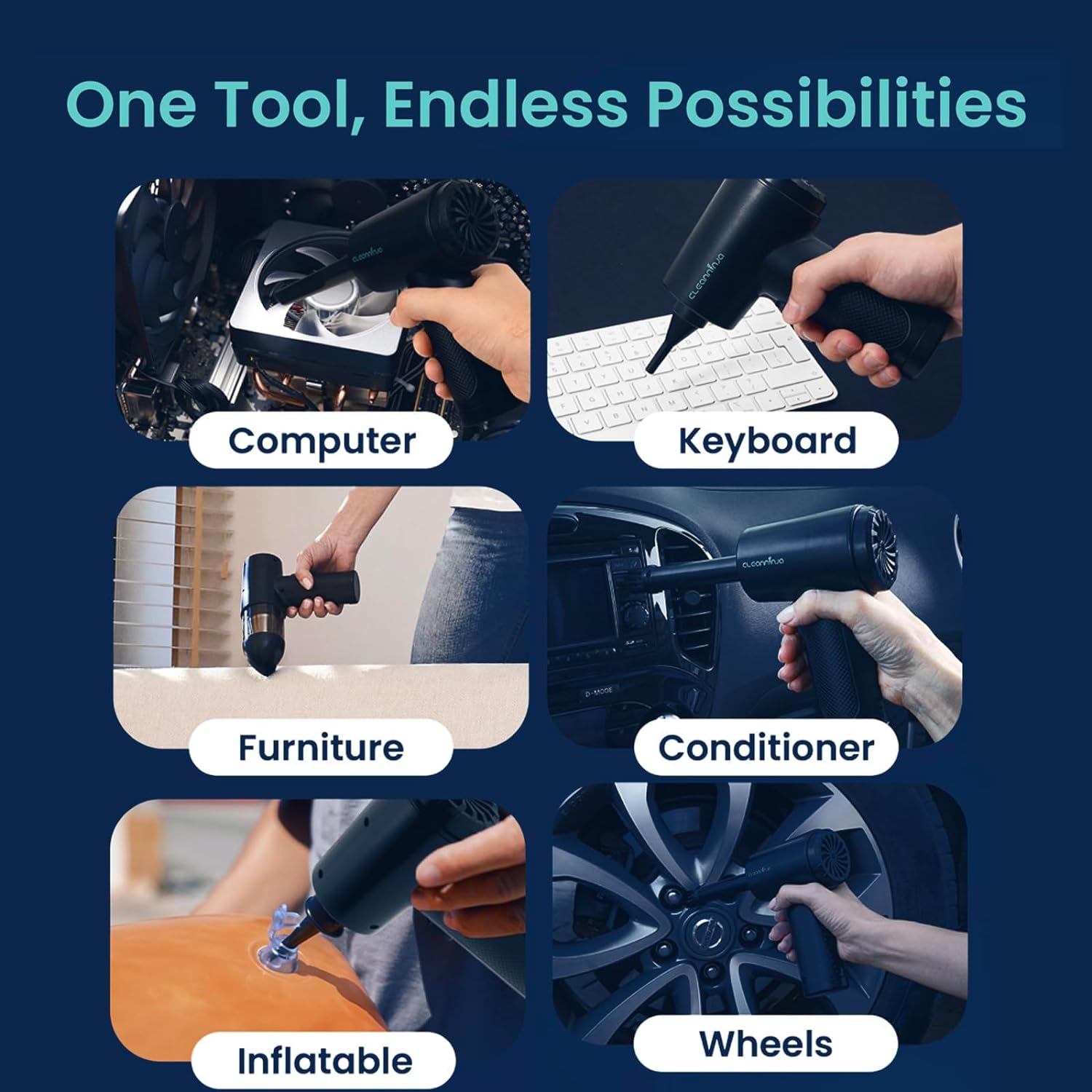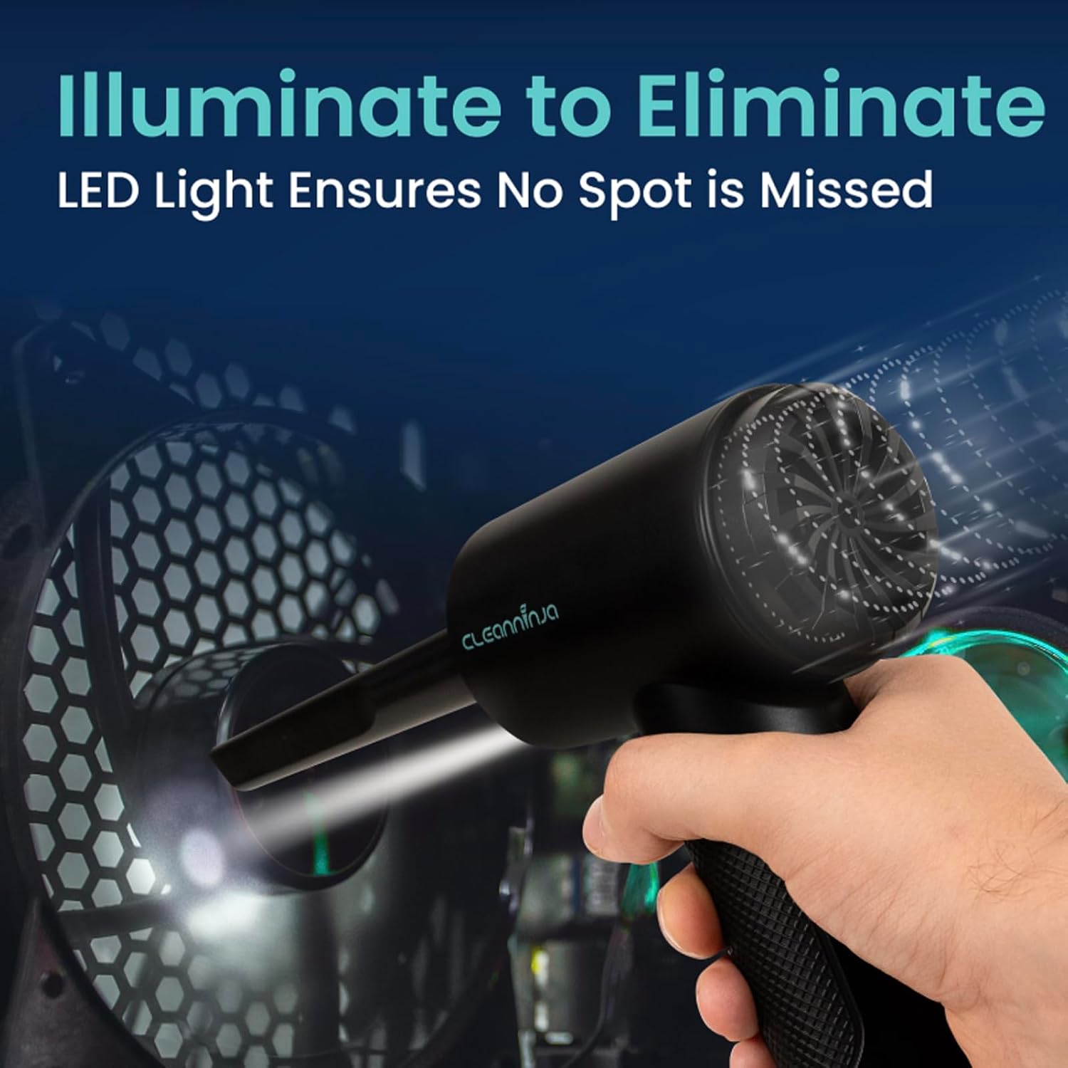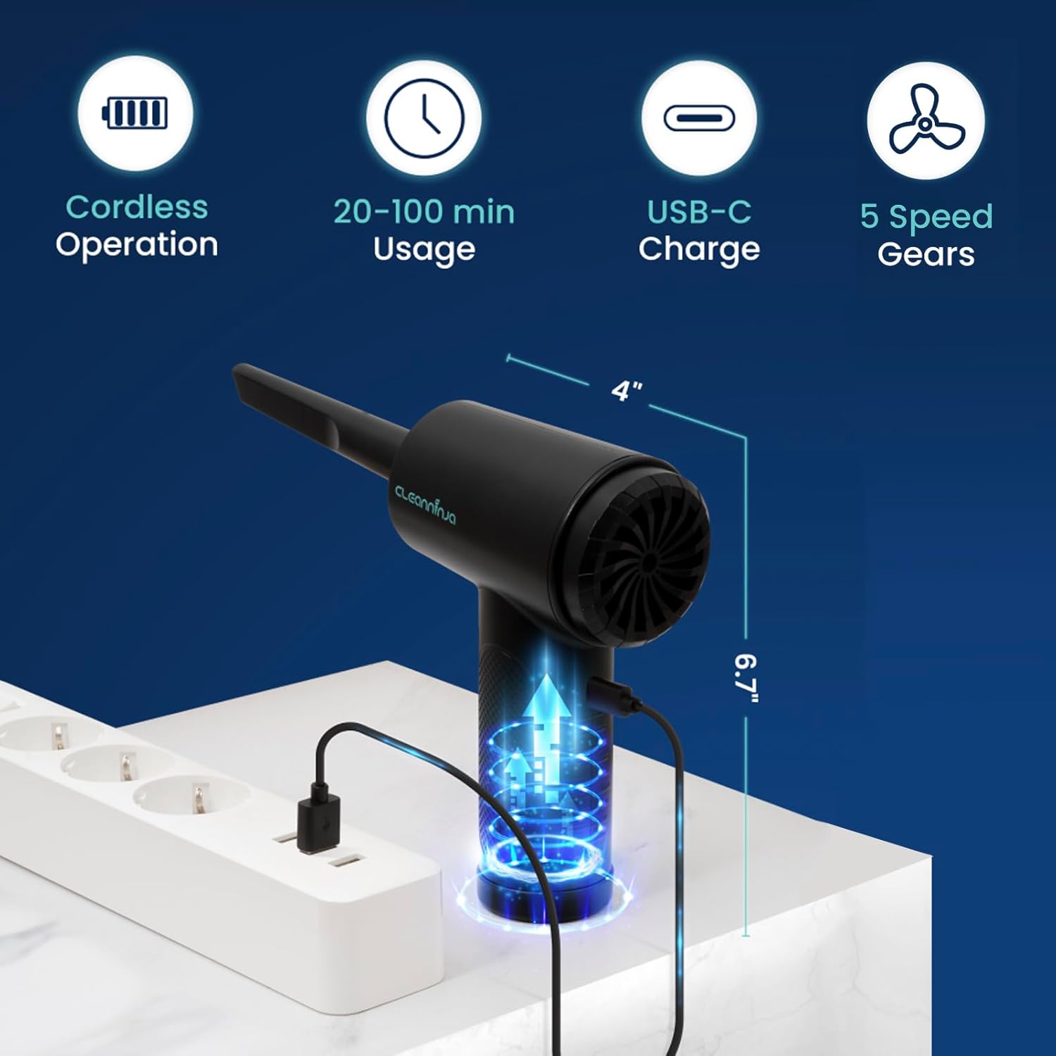 Powerful Motor with 5 Speed Modes - The Cleanninja rechargeable air duster is equipped with a 100,000 RPM motor that delivers powerful airflow for a perfect clean. Easily switch between the 5 different speed modes to suit your needs.